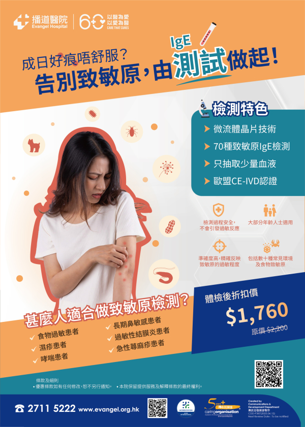 Do you frequently suffer from nasal allergies, itchy skin, or red, swollen eyes? Allergies are one of the most common chronic conditions in Hong Kong, significantly impacting patients' quality of life, work, and academic performance. Through the IgE Allergy Test, you can accurately identify various allergy triggers, such as pollen, mold, food, and animal dander. With just a small blood sample, you can obtain a detailed report, providing a scientific basis for your treatment plan.