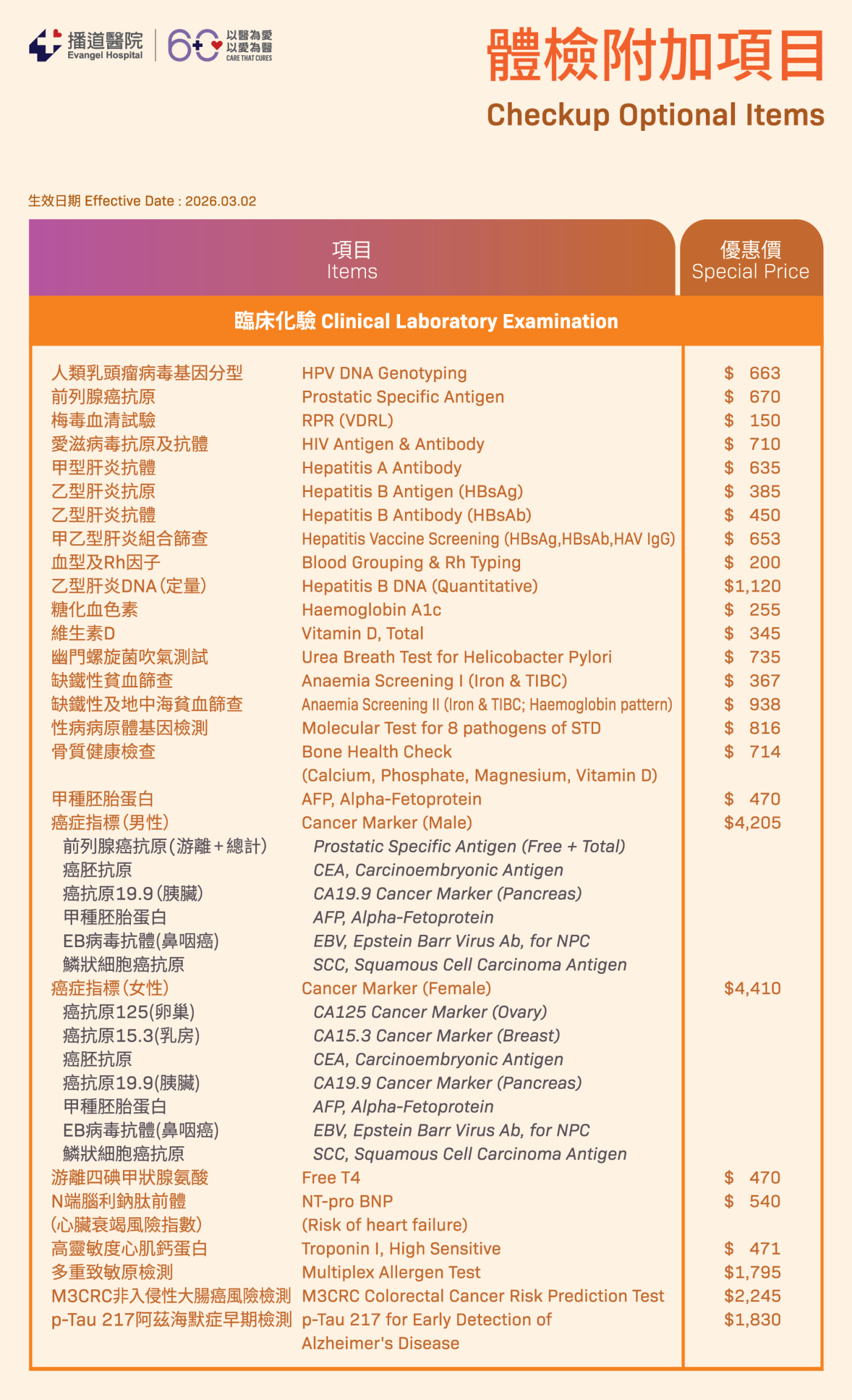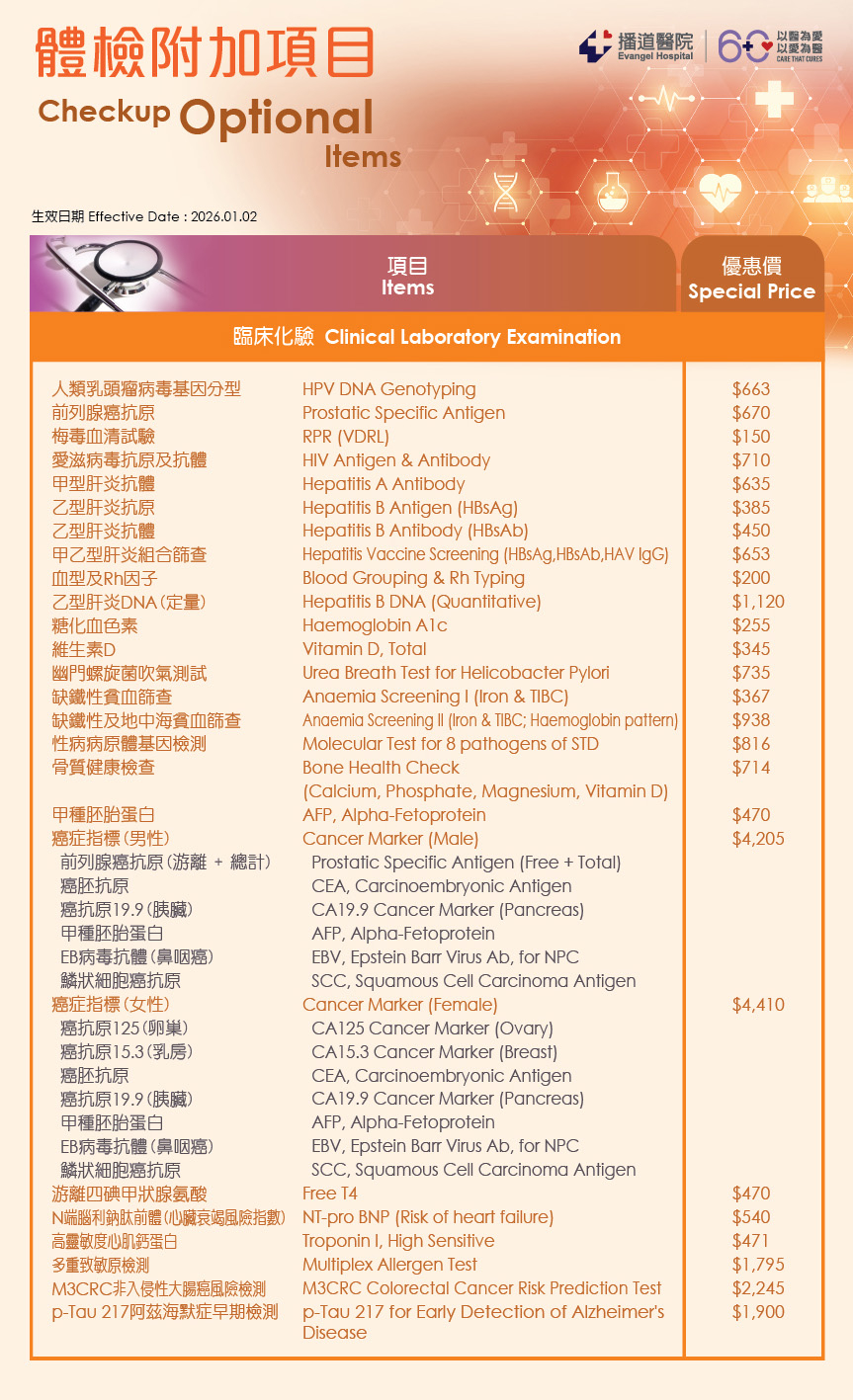 我們提供更多更適切您需要的檢查: