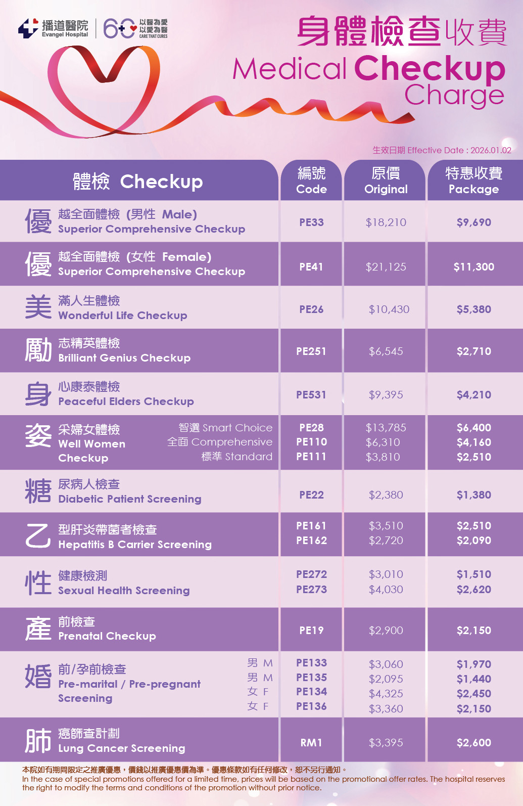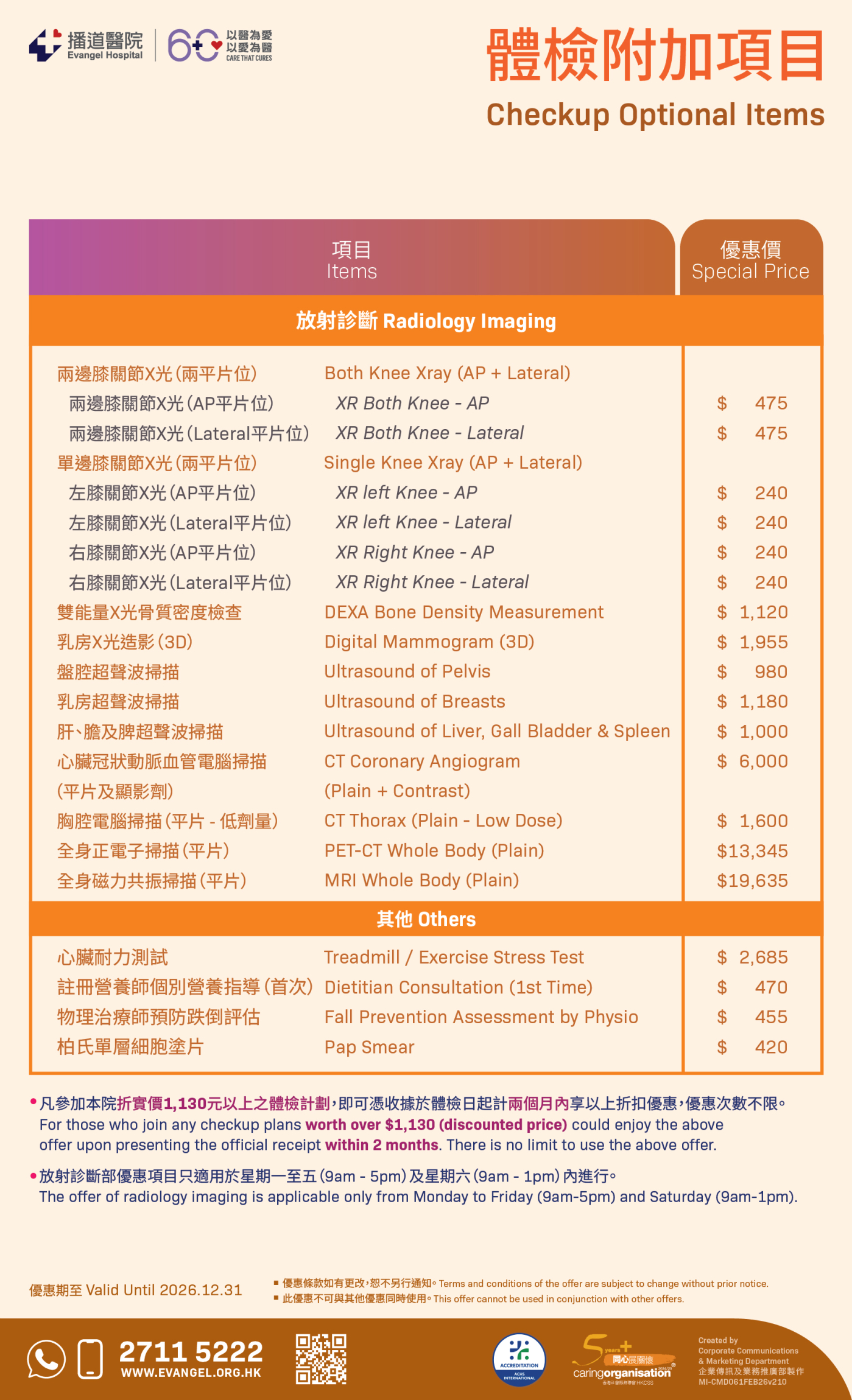 公司/機構員工身體檢查計劃(另議)