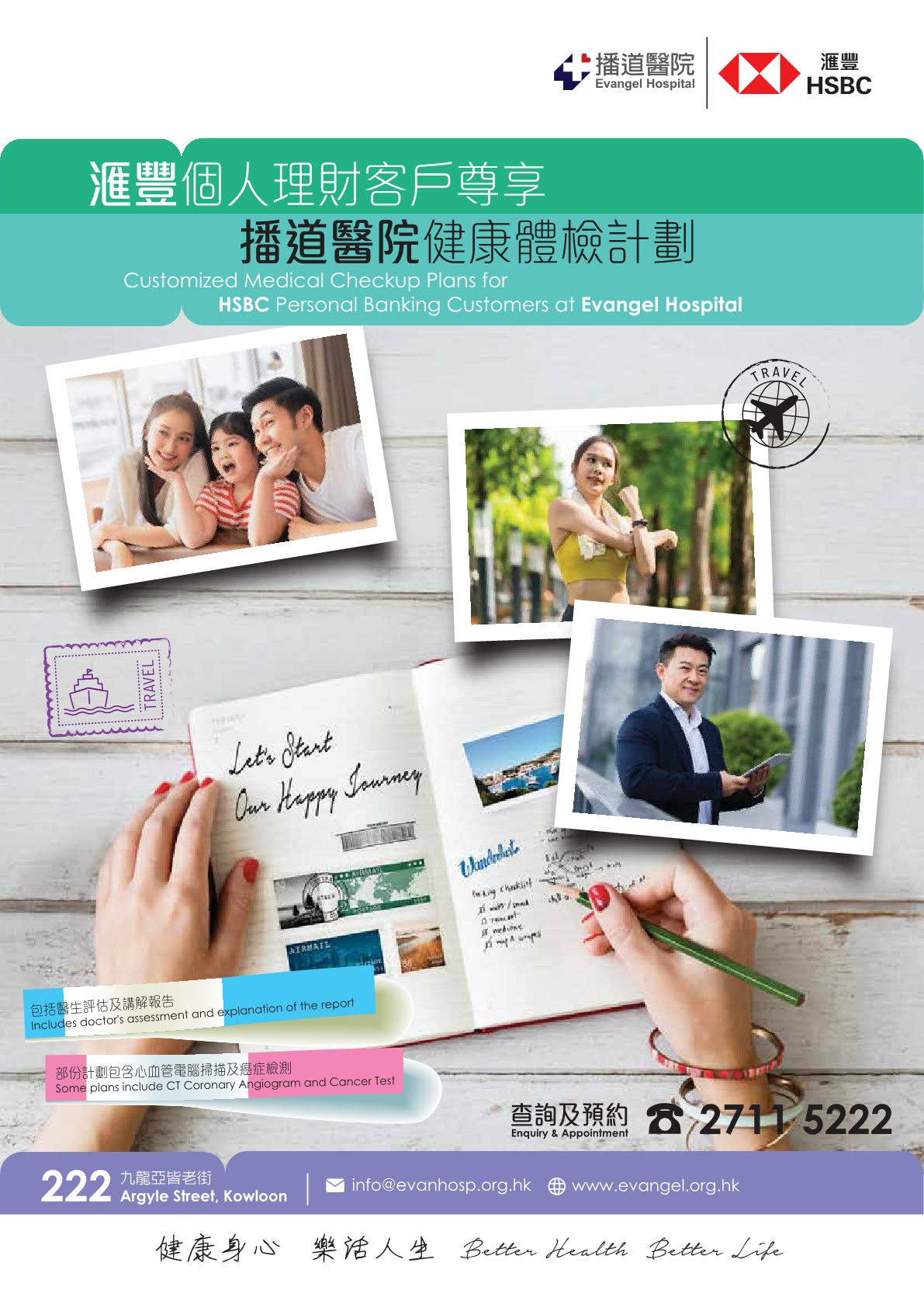 From January 2 to December 31, 2026, Evangel Hospital is pleased to offer an exclusive medical checkup program for HSBC’s personal banking customers. Through the comprehensive assessments conducted by our team of medical professionals, you can better understand your current health condition, identify potential health risks early, and take steps to maintain optimal well-being.