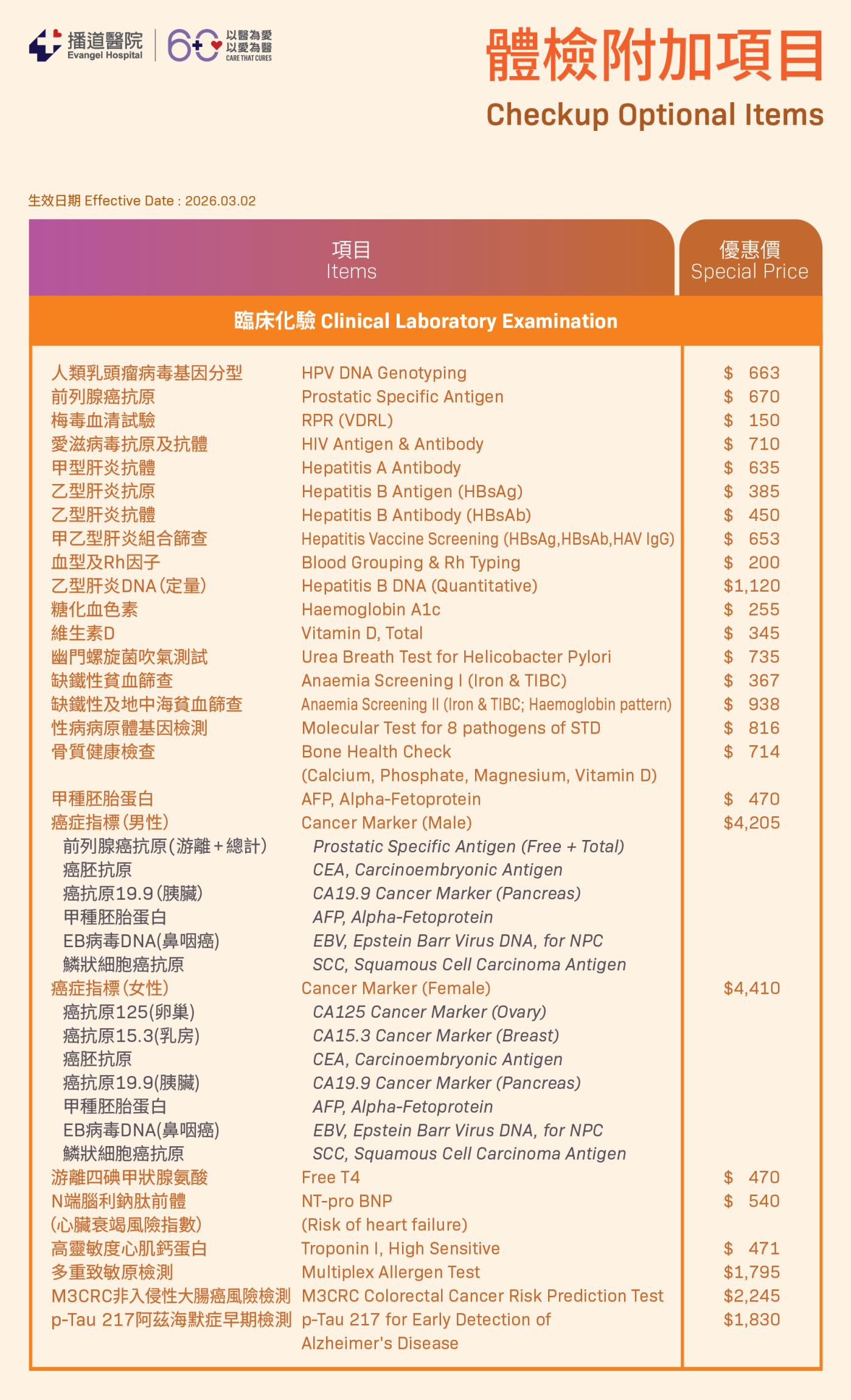 我們提供更多更適切您需要的檢查: