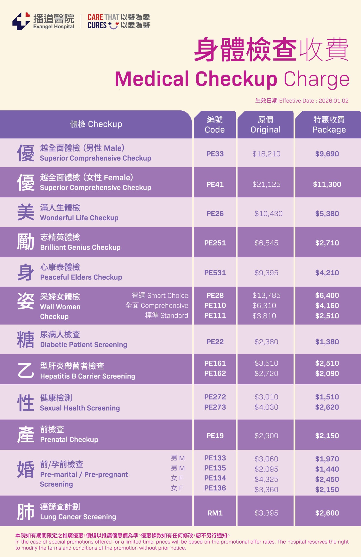 公司/機構員工身體檢查計劃(另議)
