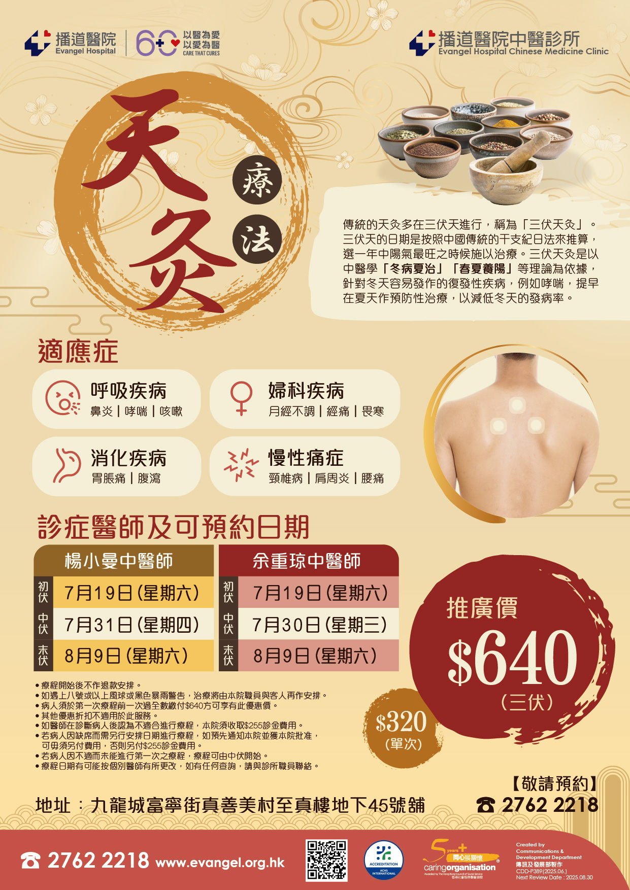 播道醫院中醫門診推出「三九冬灸」優惠(需預約):